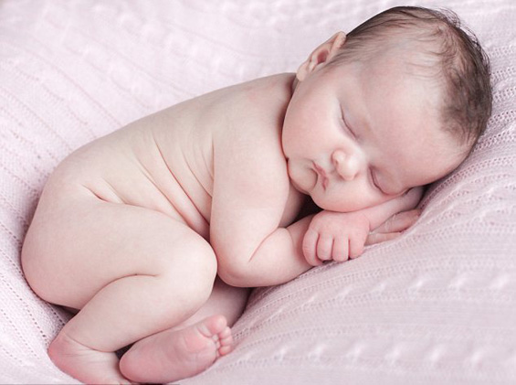 Прекрасно: бебенце старо 4 седмици, се одмора на розово ќебенце