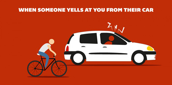 Фрустрациите во сообраќајот се секојдневие, но се чини некои луѓе изразуваат повеќе гнев одошто е нормално со оглед на ситуацијата. Велосипедистите се често на мета, па еве еден кус стрип кој ќе ви посочи неколку можни реакции на грубото довикување од возачите на автомобилите.
