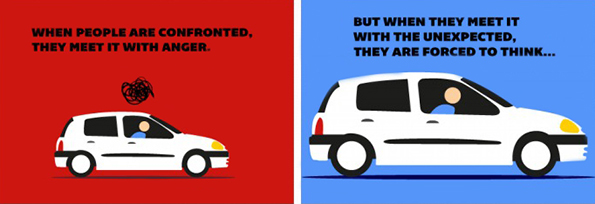 Кога ќе им се спротивставите на луѓето, тие реагираат со бес. Но, кога ќе им настапите на неочекуван начин, тие се поттикнати да размислуваат.