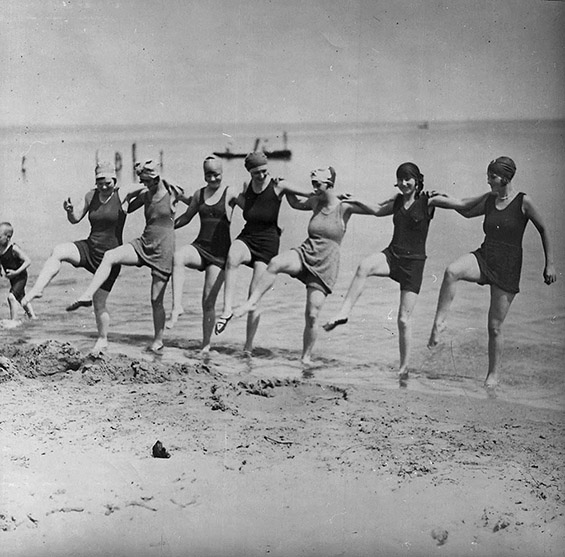 Девојки танцуваат на плажа во Торонто, Канада, 1920 година