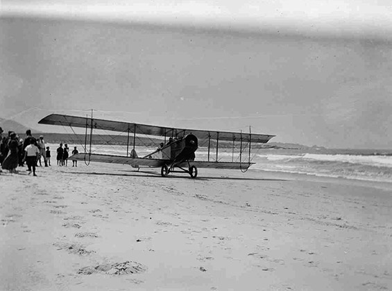 Авион на плажа во Кармел, Калифорнија, САД, 1900 година
