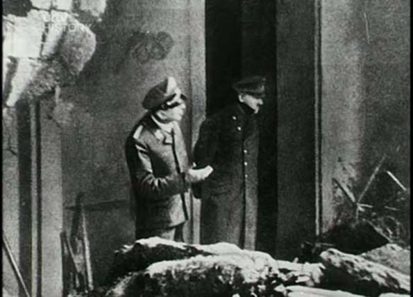 Оваа слика од Адолф Хитлер била направена приближно два дена пред неговата смрт. Тој стоел надвор од неговиот бункер во Берлин, разгледувајќи ја штетата која била направена од бомба.