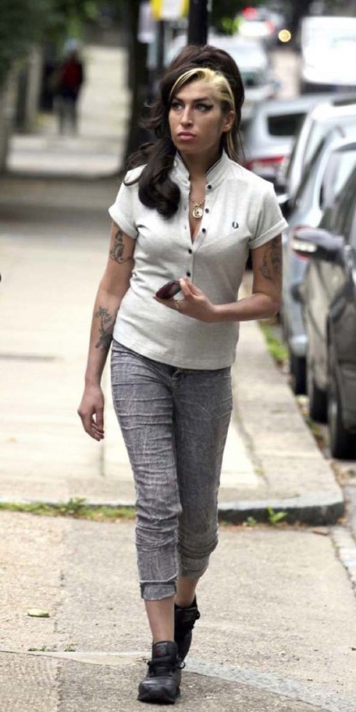 Ејми Вајнхаус е фотографирана една недела пред нејзината смрт на 23 јули 2011 година, во близина на нејзиниот дом во Северен Лондон.