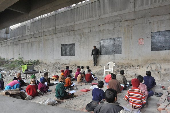 Во Индија сиромашни деца се стекнуваат со бесплатно образование од страна на учители-волонтери, под еден мост.