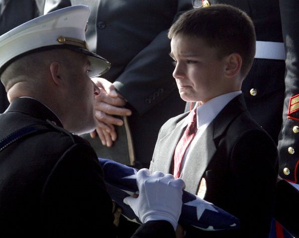 За време на меморијалот, на ова 8-годишно момче му е врачено знамето на неговиот починат татко.