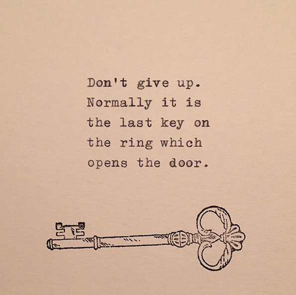 Не откажувајте се. Вообичаено, последниот клуч од обрачот е оној кој ја отвора вратата.
