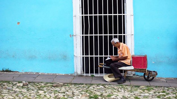 Доколку поминете покрај канделабрите од ковано железо на плоштадот Мајор кон автобуската станица, ќе здогледате човек кој седи покрај количка и чкрта во својот тефтер. Неговото име е Луис Мартинез.