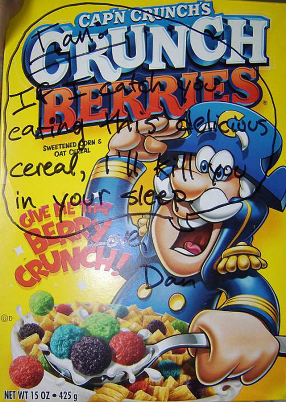 Не е лесно да се дели домот со други луѓе, особено не со цимери кои секогаш прават лом и не се грижат за домаќинските работи. Колку и да сте блиски, секогаш ќе има некои работи кои ќе ви сметаат. Испровоцирани од таквите постапки, американските студенти го изразуваат револтот преку пресмешни, хистерични белешки, посветени на цимерот. 🙂
