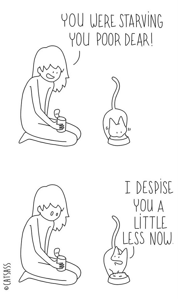 Сопствениците на мачки честопати се прашуваат што сакаат да кажат овие неодоливи крзнени пријателчиња. Немојте да ве залажува нивниот сладок изглед бидејќи тие се злобни и суетни суштества. И ќе ве повредат кога најмалку очекувате. Оваа мачка е токму таква и не се срами да го каже тоа.