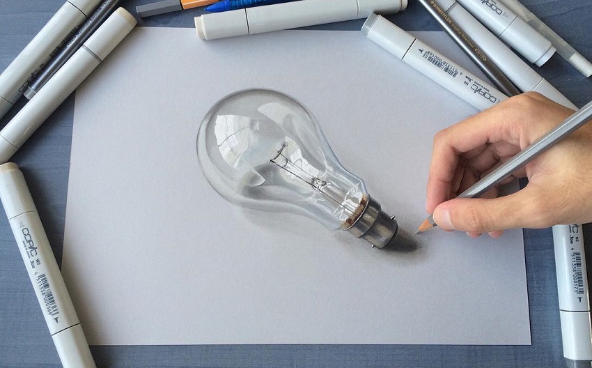 Read MoreКористејќи само пенкало, маркери и дрвени бои, Ране ја трансформира хартијата пред него да изгледа како тридимензионален предмет.