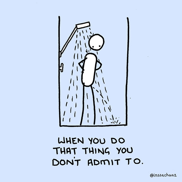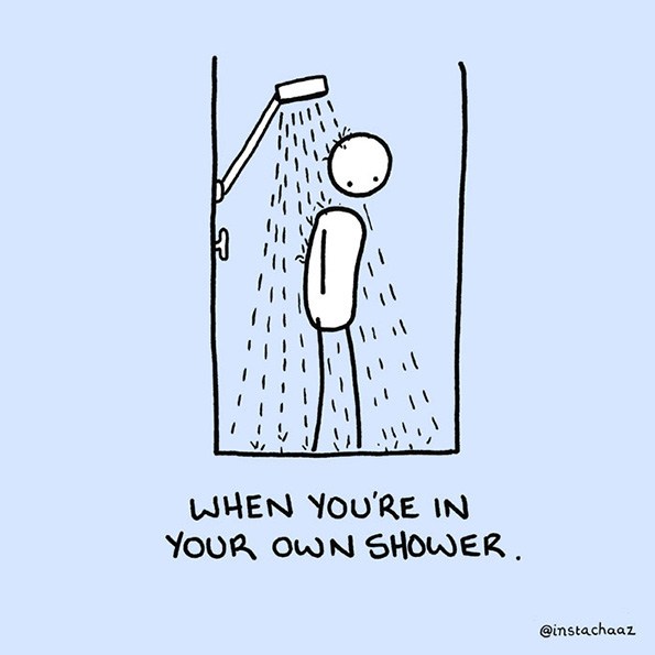 Ако се туширате околу 5 пати неделно, тогаш поминувате околу 35 часа во текот на годината во вашата туш кабина. Тоа е многу време поминато во стоење голи под вода. Но, што сè се случува во овие моменти? Погледнете ги следниве одлични илустрации од генијалниот Чез Хатон, што ќе ве насмеат до солзи само затоа што ќе се пронајдете во секоја од сцените!