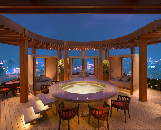Сместен на најгорните два ката од хотелот Хајат во Шангај, барот Vue изобилува со луксузен ентериер. Мермерното џакузи опкружено со кревети и коктел бар, се полни со гости уште пред да падне ноќта.