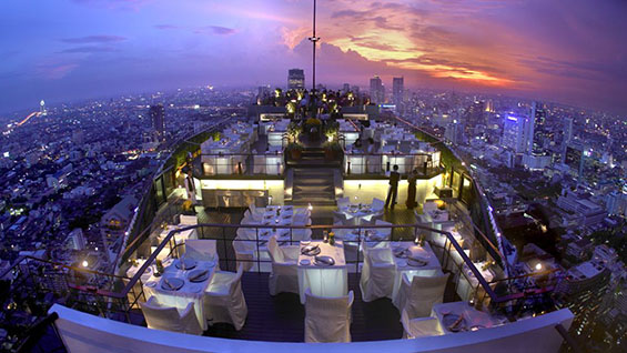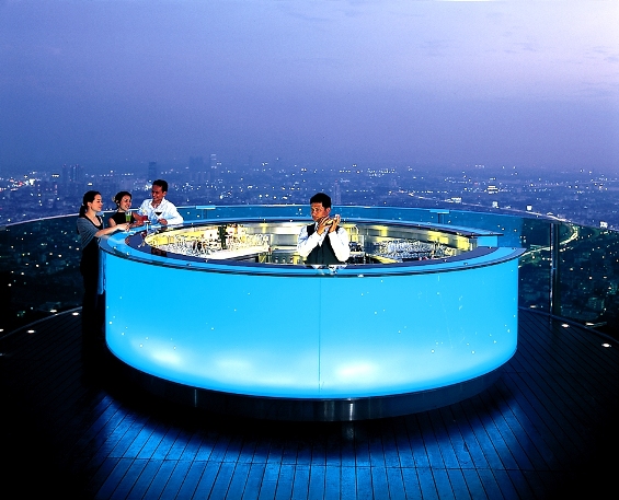 Веројатно нема место во Бангкок каде што може да се вечера со повеќе адреналин во крвта. Барот на 64-от кат на хотелот Лебуа, нуди фантастичен поглед кон градот на сите четири страни, сѐ додека окото може да види. Особено е убава ноќната глетка, исполнета со безброј градски светла, додека уживате во овој уникатен колоритен бар.