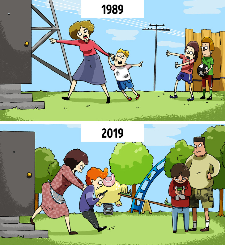 Современата технологија со голема брзина ги менува животите на луѓето што понекогаш сите имаат потреба да застанат и да погледнат наназад за да видат како функционираа работите не многу одамна. Нештата се менуваат и на подобро и на полошо, а вие треба да бидете сигурни дека технологијата не ги заменува скапоцените работи како што се врските, пријателствата и комуникацијата меѓу луѓето. Овие илустрации покажуваат дека лаптопите, паметните телефони и видеоигрите не можат да бидат соодветна замена за семејството и за пријателите. Погледнете ги илустрациите за да реагирате пред да биде предоцна.