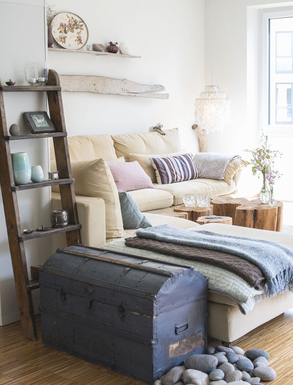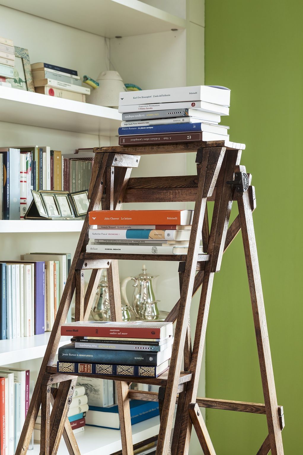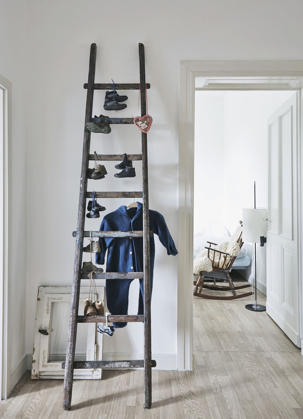 Ако имате стара скала што веќе не ја употребувате, претворете ја во убава полица. Потребни ви се само украсна хартија, боја за дрво и малку трпение. Во продолжение, погледнете ги фотографиите за да добиете инспирација како да ја вметнете скалата во вашиот ентериер.