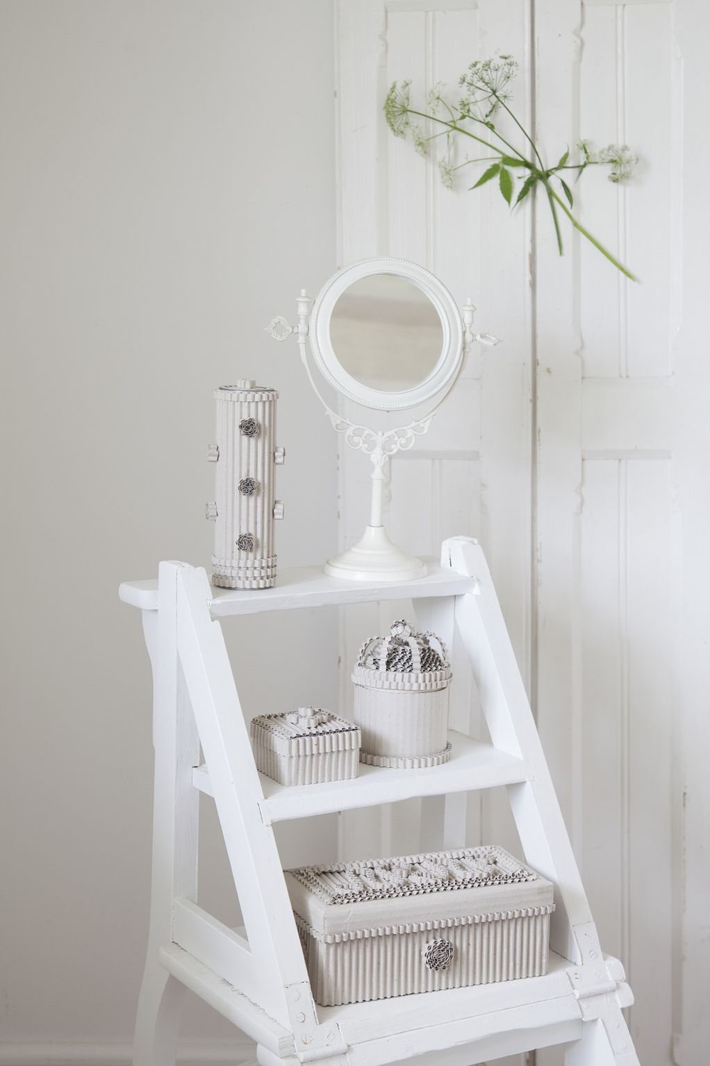 Дводелната скала зазема малку повеќе простор, но затоа нуди поголема површина за уредување. Скалите можат да бидат одлично место за чување шминка, свеќи или убави садови.