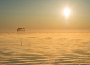 Астронаути се враќаат од орбитата на Земјата во капсула од Сојуз ТМА-14М