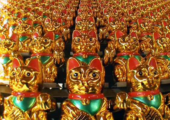 Овие 520 среќни пластични мачки се наредени во 40 редови и 13 колони, формирајќи еден вид матрикс екран, каде секоја мачка претставува еден пиксел на екранот. Со помош на посебна машина, на мачките им се контролира движењето на рацете. Интересно е тоа што самите посетители се охрабрени да земат учество. Тие можат да внесат текст (својата желба) долг до 40 карактери, кој потоа го прикажуваат мачките дигајќи ја едната рака. Буквите се со различна боја, и од тоа зависи кога и која мачка ќе ја подигне својата рака.