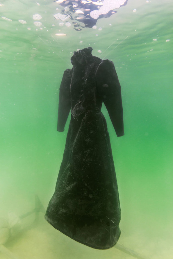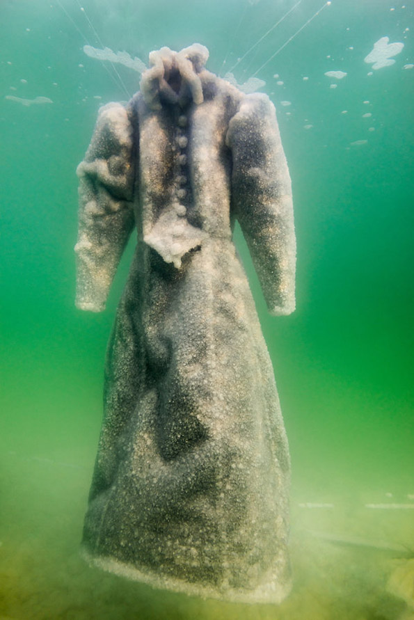 Фустанот влегол во езерото целосно црн, но за два месеца магично се трансформирал во фустан од бајките, целиот покриен со бела кристализирана сол.
