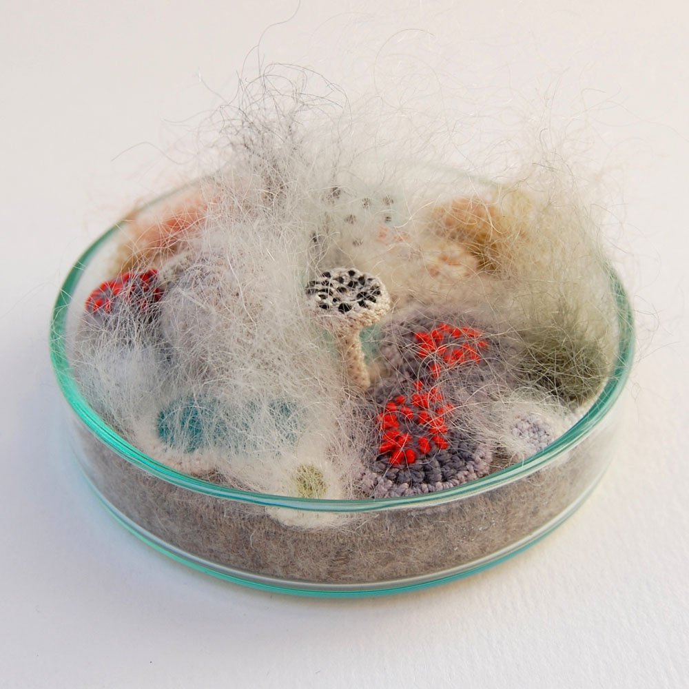 Елин Томас е артистка што создава чинии и различни предмети исполнети со мувла и бактерии. Нејзината уметност без сомнение е уникатна. Таа прави еден вид научни експерименти користејќи волна како основа, а потоа внимателно го насочува растот на мувлата и бактериите со помош на различни техники за везење. Елин докажува дека дури и од најчудните и најодвратните нешта можеме да направиме уникатно и креативно парче уметност, доколку имаме доволно имагинација. Погледнете ги нејзините неверојатни изработки…