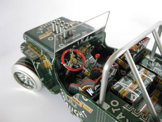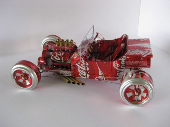 Автомобилите се составен дел од секојдневието на луѓето, па затоа многу често тие претставуваат инспирација за уметниците и скулпторите. На пример, Сенди Сандерсон, кој живее во Хамилтон, Нов Зеланд, ги собира празните лименки од сокови и пиво и од нив создава фантастични класични автомобили со многу прецизни детали.