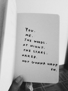 Јас. Ти. Шума. Ноќ. Ѕвезди. Голи. Нема да се случи.