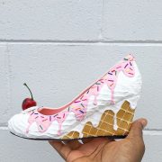 Американската дизајнерка Крис Кемпбел од Орландо, Флорида е многу страсна за десерти и чевли. Таа дури и нашла начин како да ги спои своите две најголеми страсти во еден продукт, притоа создавајќи ја колекцијата десерти во форма на чевли. Таа создава навистина добри модели во форма на сладоледи, крофни и торти. Погледнете…
