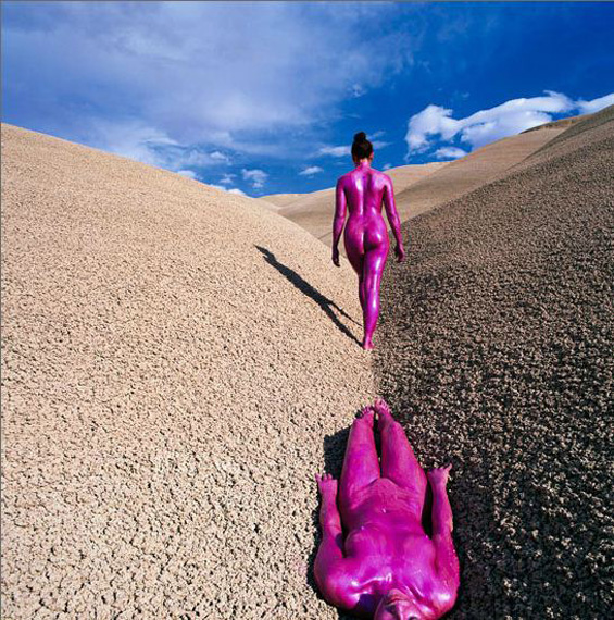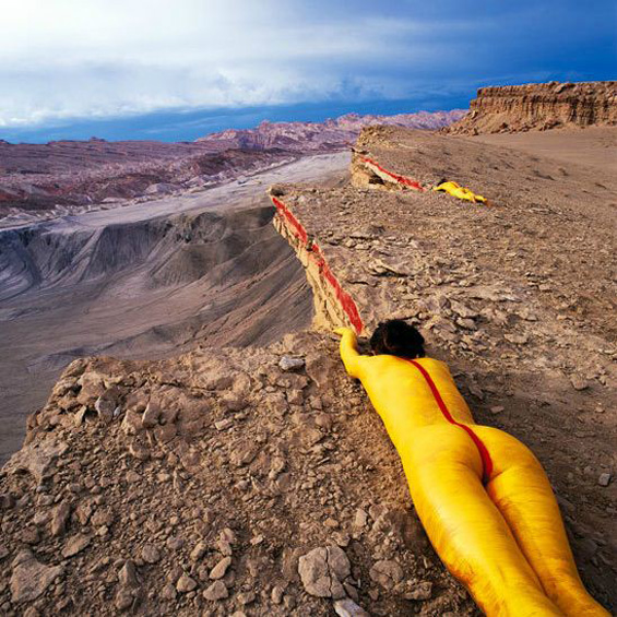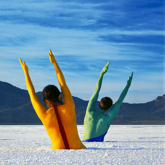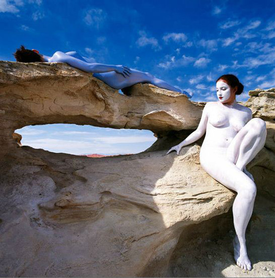 Калифорнискиот фотограф Џин Пол Бордијер комбинира уметничка изведба, цртање на телото и прекрасни пејзажи, за да ги креира овие фантастични фотографии во кои луѓето се преплетуваат во природата.