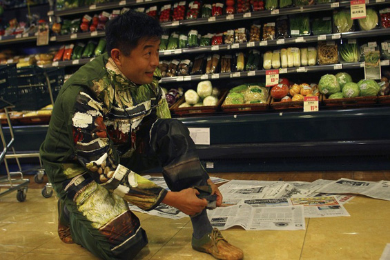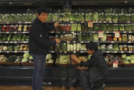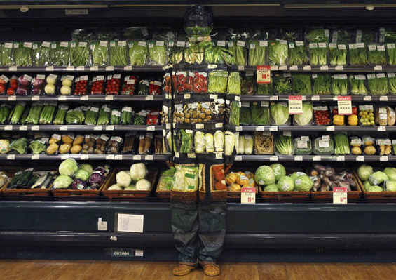 Во еден маркет во Пекинг, уметникот Лиу Болин го претставил својот последен проект. Преку целото тело ги нацртал соодветните зеленчуци кои се наредени зад него, за да се „вклопи“ со полиците и да изгледа како таму да нема никој.