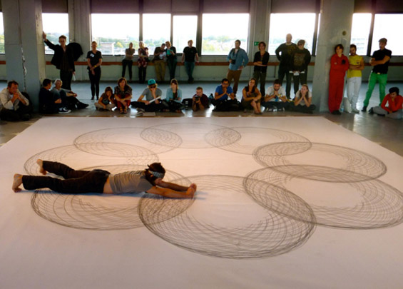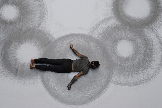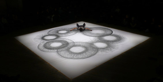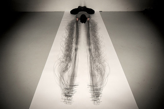 Тој има искуство како танчер и кореограф, а сега, користејќи го целото тело или само одредени делови од него, како зглобовите, создава огромни цртежи, кои се неверојатно прецизни и симетрични.