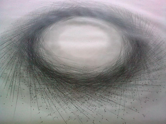 Неговите изведби траат од 15 минути до 7 часа, непрекинато повторувајќи исти движења. Со оглед на специфичноста на алатката која тој ја користи во уметноста, неговата работа истовремено претставува неверојатен перформанс кој е интересен за гледање додека трае, на крајот резултирајќи со огромна творба во вид на цртеж.