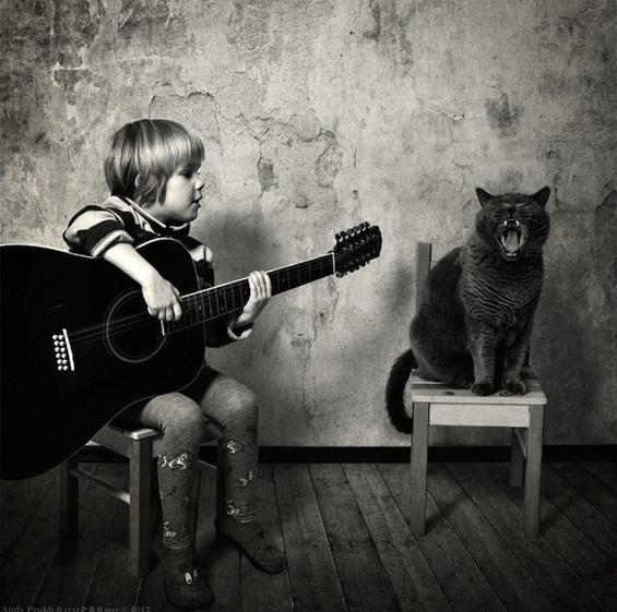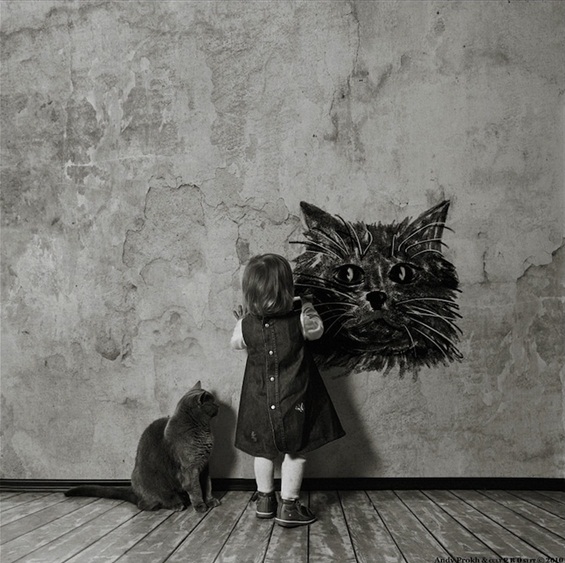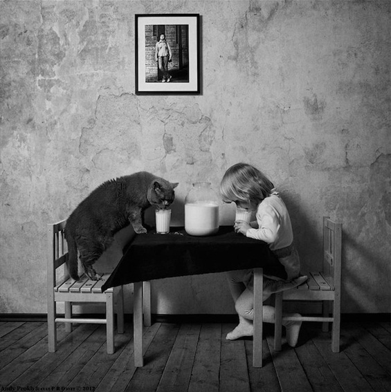Фотографиите се направени од нејзиниот татко, фотографот Енди Прокх кој успеал на еден уникатен начин да ги зачува спомените на својата ќерка и да ги овековечи слатките моменти на игра. Веселиот дух на Катерина буквално сјае низ црно-белите фотографии, а мораме да признаеме дека и Лилу е одличен модел. Без разлика дали решаваат математички задачи или чкртаат на ѕидот, овие две пријателчиња навистина уживаат во нивната дружба. Самиот Енди вели дека обожува од време на време да им се придружува во нивниот посебен свет и дека се неговите омилени модели за фотографирање.