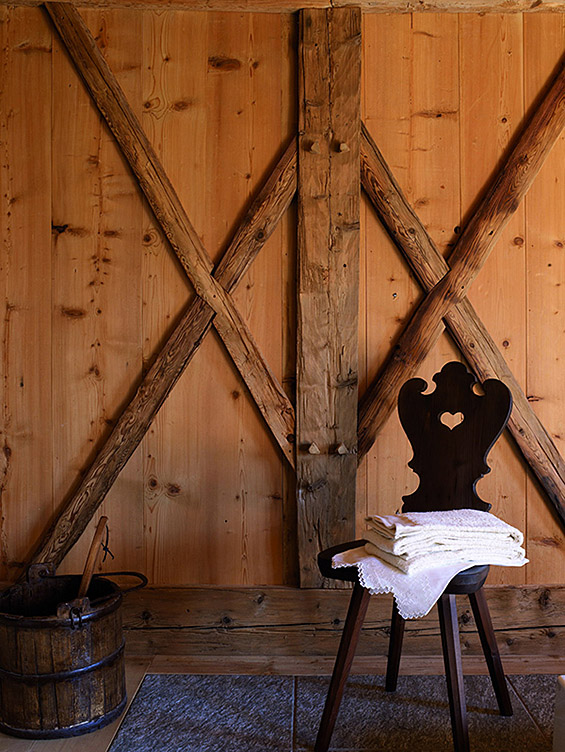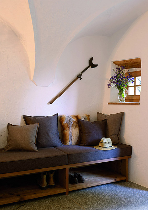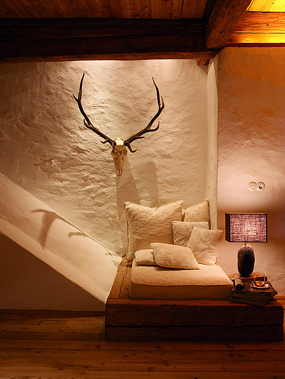 Прецизниот засводен плафон, дрвениот под, нецелосно обработените ѕидови, земјените текстури како и локалните материјали придонесуваат за природноста на овој простор. Каминот, без сомнение е централната точка на овој дом. А рустикалните спални соби? – Тие се вистински сон, со дрвени греди и многу локални мотиви, како и антички материјали монтирани над креветот.