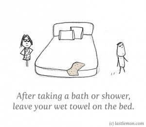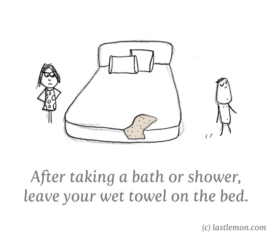 Откако ќе се избањате или истуширате, оставете го вашиот мокар пешкир врз кревет