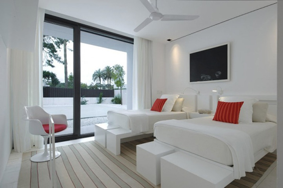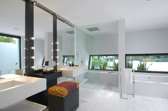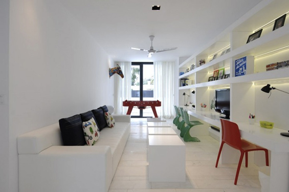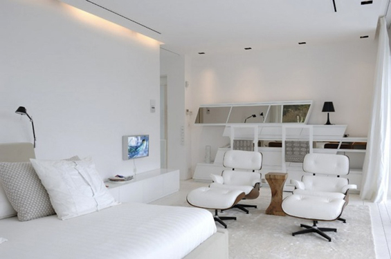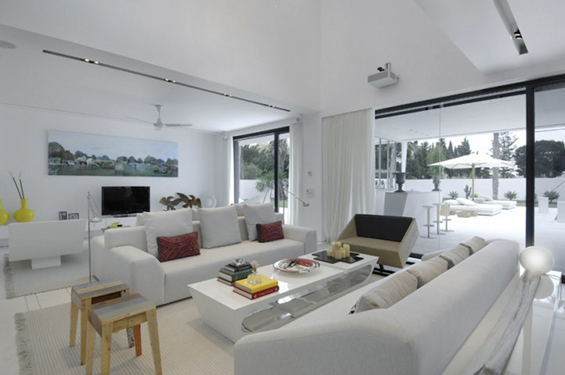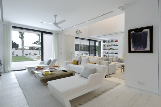 Распослана на површина од 400 метри квадратни, во оваа бетонска куќа, доминира белата боја, што ѝ дава една свежина и чистота, поради што најверојатно ќе им биде омилена на педантните луѓе.