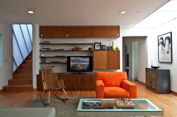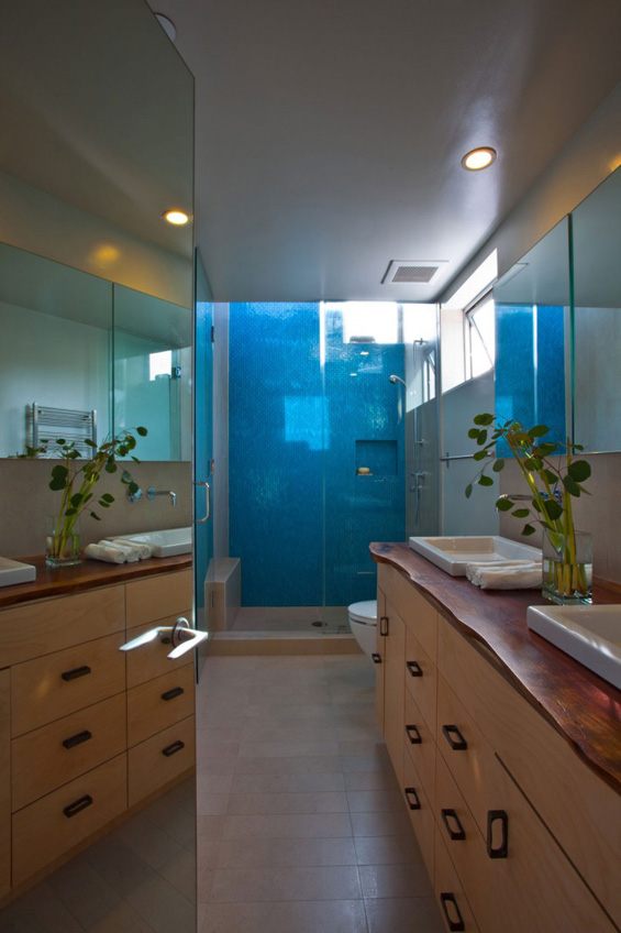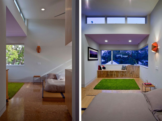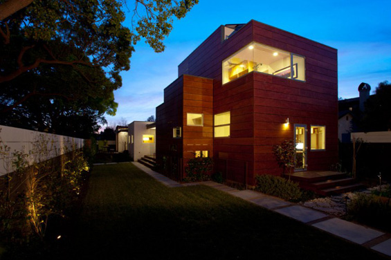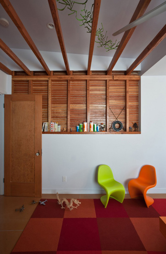 Архитектонската компанија „Shimizu and Coggeshall Architects“ од Лос Анџелес ја има редизајнирано оваа куќа во Санта Моника, која првично е направена во 1920 година. Проектот бил завршен во 2010 година, а куќата сега е распослана на 258 квадратни метри. Спалната и детската соба се направени едноставно и двете зрачат со позитивна енергија. Низ целата куќа доминираат дрвените елементи, како што впрочем е направена и фасадата на куќата.