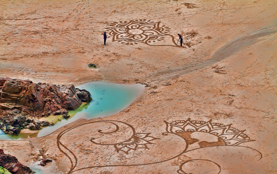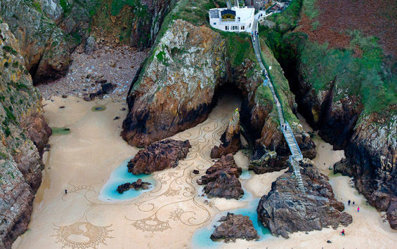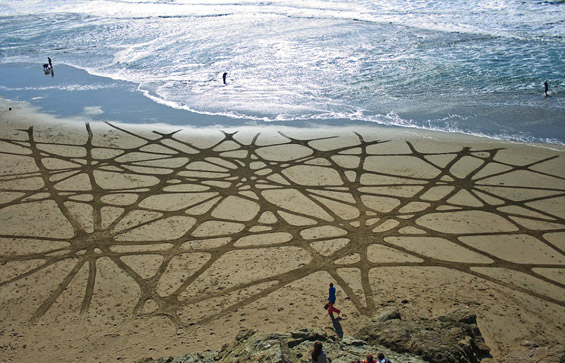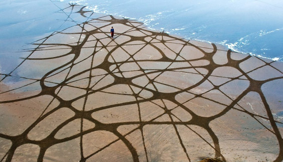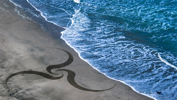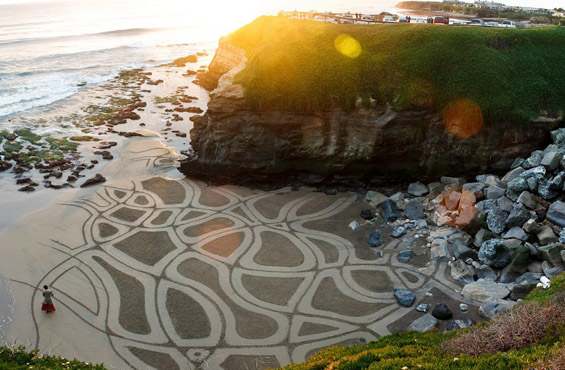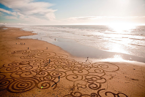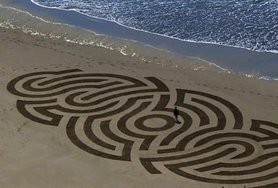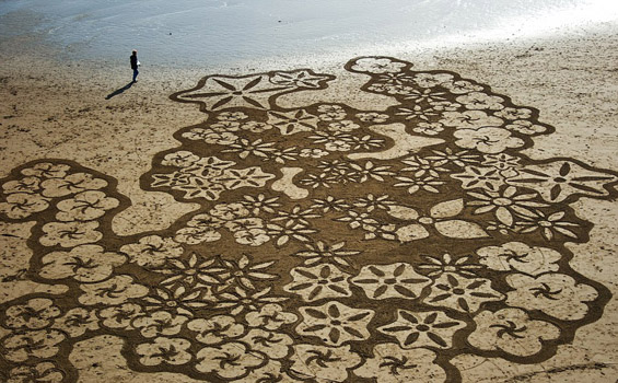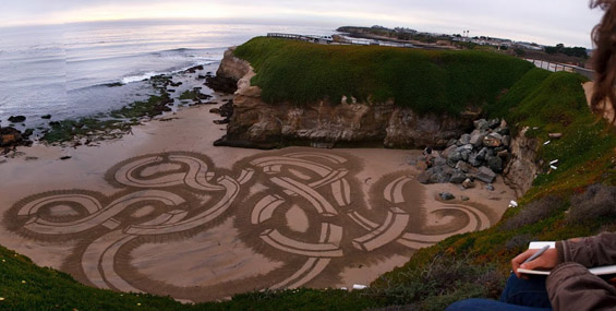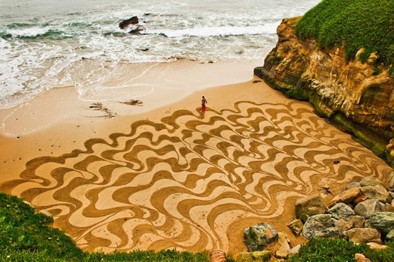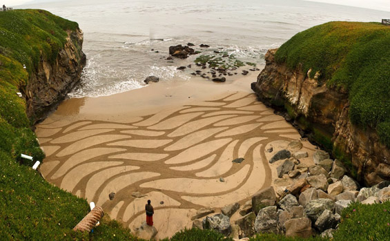 Со гребло и малку имагинација, Андрес Амадор од Сан Франциско создава перфектни уметнички дела на песочни плажи. На еден пејзаж работи со часови, а можност да ужива во истиот има само неколку мигови, пред да надојде плимата и да го избрише. Во тие малку минути, единствено што успева е да ја фотографира сопствената уметност.