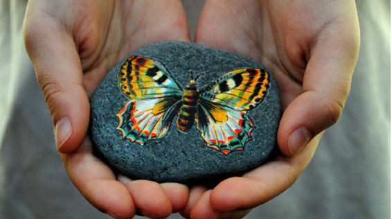 Цртањето врз камчиња е навистина креативна уметност. Со овој талент може да се пофали и младата Кетрин од Мајами, Флорида, чие животно мото е: „Знаењето е моќ, а патувањето е знаење“. Таа себеси се опишува како хипик, уметник, писател, светски патник, градинар, творец… Нејзината основна инспирација е природата.