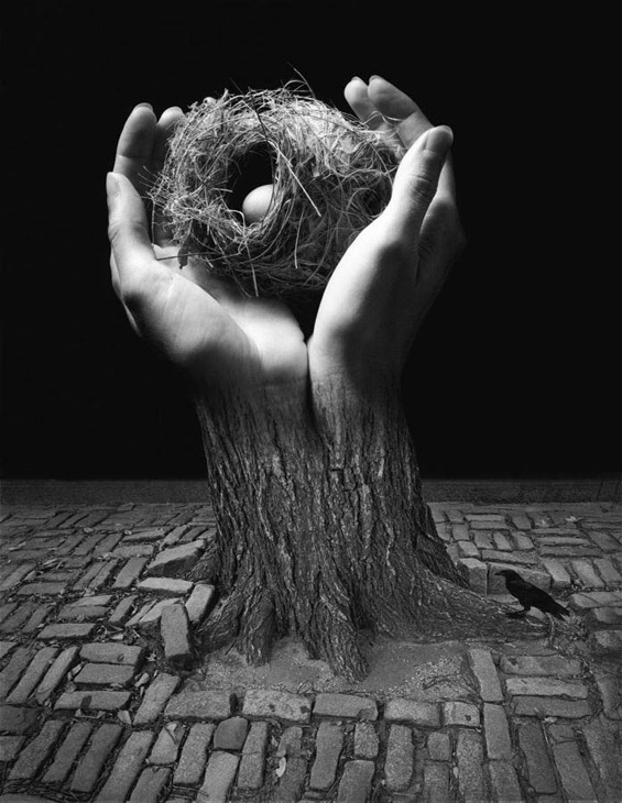 Jerry Uelsmann почнал да спојува фотографии години пред дигиталните алатки како Фотошоп да бидат достапни. Тој е фотограф од САД, кој се смета за предвесник на фото-манипулациите. Неговите надреални композиции, кои се комбинација од реализмот на фотографијата и флуидноста на соништата, се создадени на потешкиот начин, со користење на апарати за зголемување и повеќе негативи.