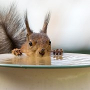 Фотографот Герт Веген направил мало „фото студио“ во својот двор кое му служи за да привлече животни и потоа да ги фотографира. Во неговото студио поставува храна која засега привлекува само верверички. Штом тие се наместат во опкружувањето кое Герт го создал за нив, тој подготвено чека на прозорецот од кујната за да го притисне копчето за фотографирање и да ги направи овие прекрасни фотографии.