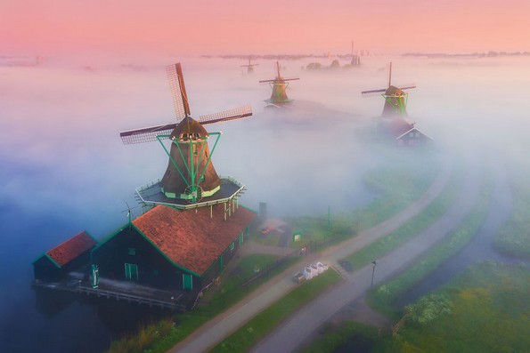 Едно утро, познатото село со ветерници во Холандија било прекриено со густа магла. Фотографот Алберт имал доволно среќа да биде таму околу 5 часот наутро и да ги направи овие фотографии.