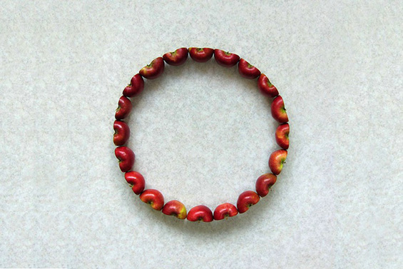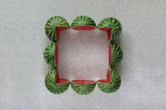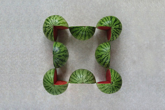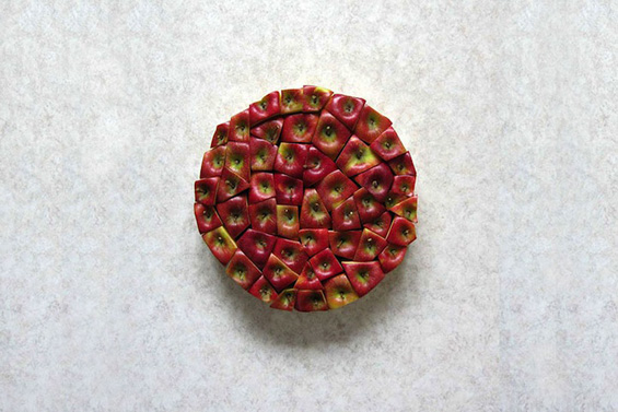 Турскиот уметник Шакир Гукчеба очигледно има поинаква перцепција за овошјето и зеленчукот од другите луѓе. Сигурно си помисливте дека овие импресивни фотографии се дело благодарение на Фотошоп, бидејќи сечкањето дузина јаболка во апстрактни облици, само за да се состави совршен круг, е речиси невозможна мисија. Вистината е дека, Гукчеба внимателно и трпеливо ги сечка, лупи и реди плодовите, сѐ додека не го постигне совршенството, за неговата уметничка серија со уметност од храна. Неговите аранжмани презентираат интересни, невидени форми од храна, кои се празник за очите!