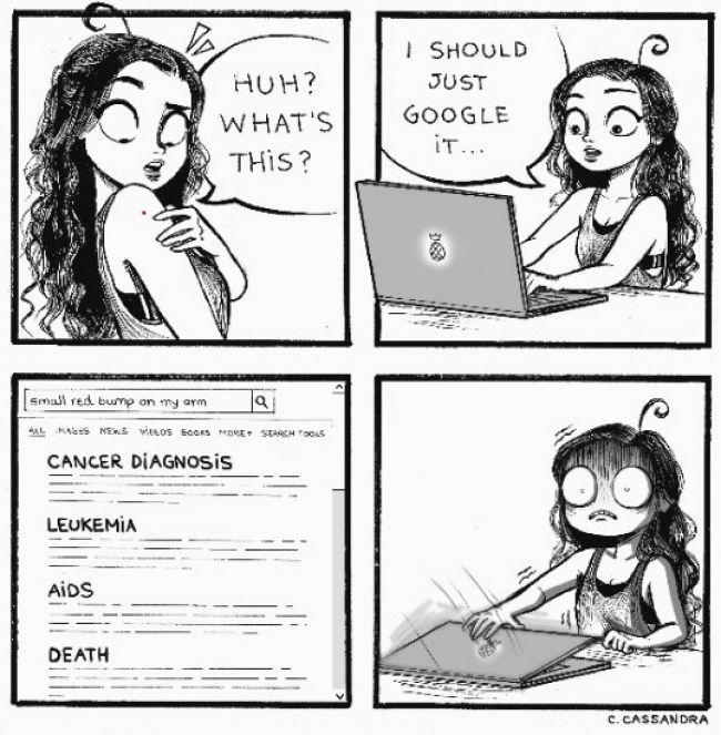 Пребраувањето на Google за да откриете зошто ви се појавила нова бенка е секогаш лоша идеја