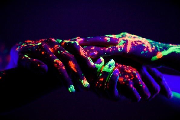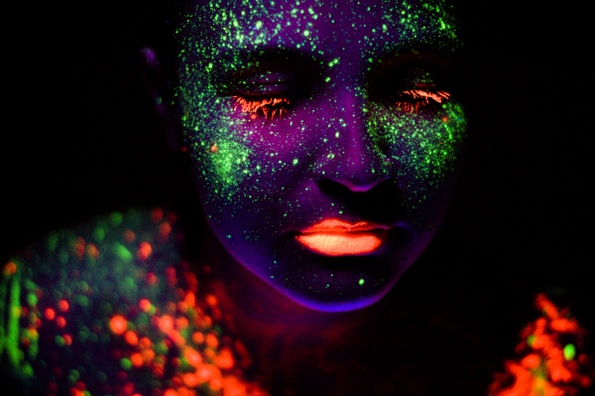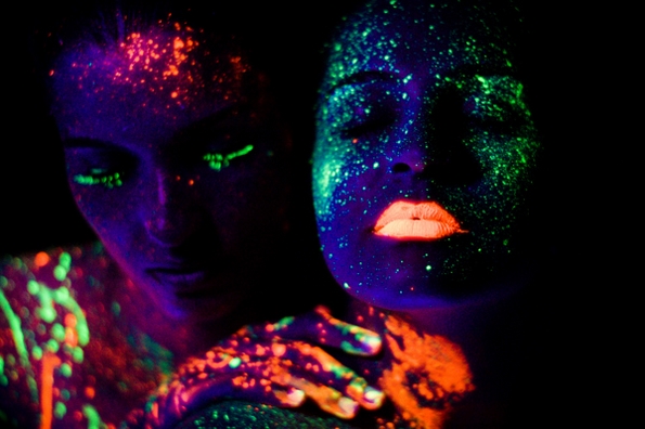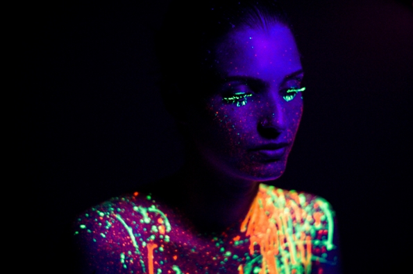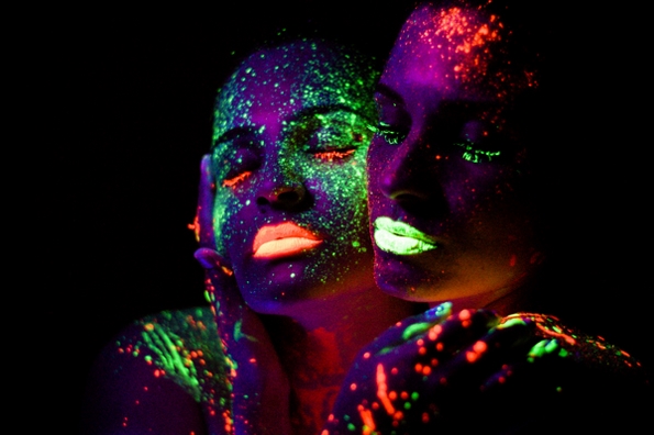 „The Glow“ (Блесокот) е колоритна фотосерија од бразилската артистка Сара Леал. Употребувајќи неонски бои и црна светлина, Сара истакнува одредени детали од човечкото тело, на еден невообичаен, но прекрасен начин. Портокаловата и зелената боја распрскана на сината кожа, создава една надреална композиција во која дланките, усните и очите се истакнуваат наспроти темнината.