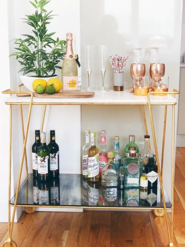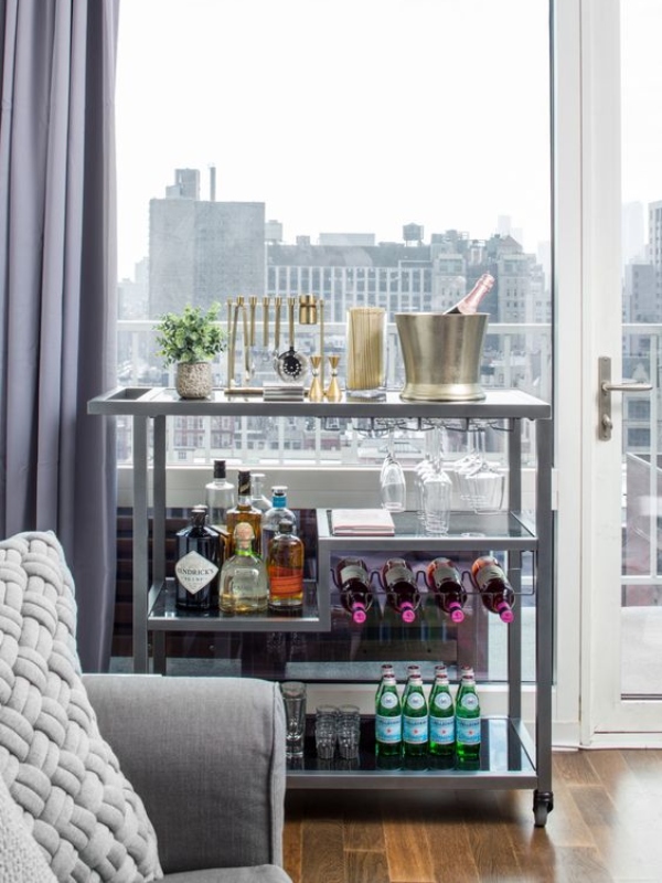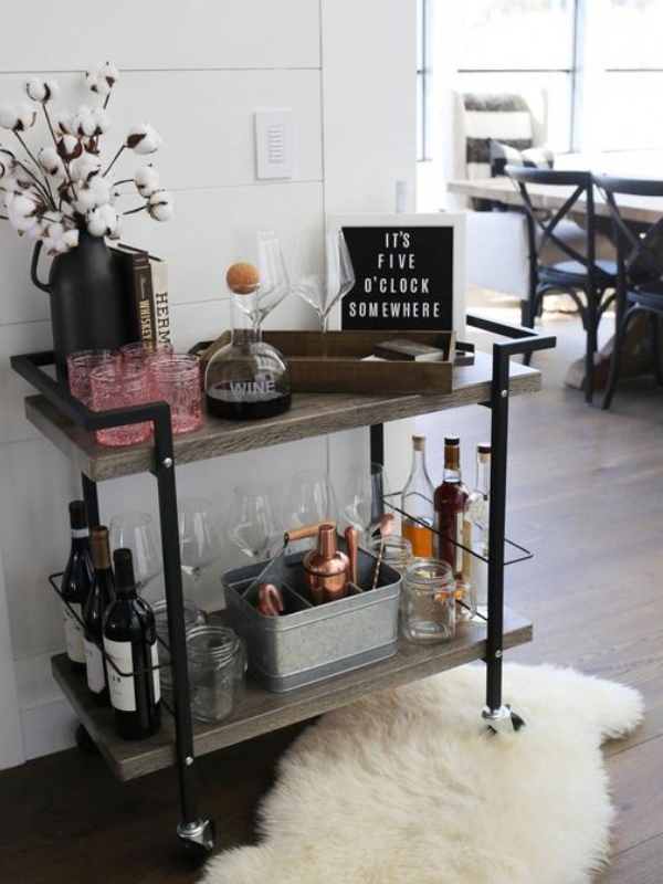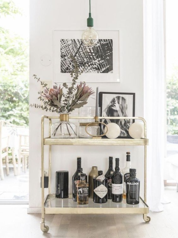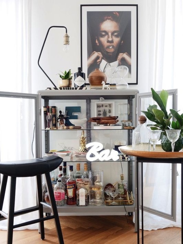 Исто така, кофата со мраз е добредојдена на шанкот, а на задниот дел можете да поставите огледало. Ако ви недостасува инспирација како да го уредите минибарот, погледнете ги фотографиите подолу.
