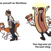 Сите претпоставуваме што мислат мачките за нас. Знаеме дека нѐ мразат и дека сакаат да ја уништат човечката раса. Но, откако прво ќе ги нахраниме. А што е со кучињата? Дали некогаш сте се запрашале како кучињата гледаат на нас? Илустраторот Кели Ејнџел размислувала за тоа и нацртала неколку интересни илустрации.