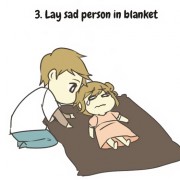 Доколку припаѓате во онаа група луѓе кои не се толку добри во помагањето на другите да се соочат со некои потешки моменти, ситуации и проблеми, тогаш овие интересни илустрации направени од артистот Џон Садингтон, можат да бидат вистинскиот водич и правилник. Сѐ што треба да направите е да ги следите овие 10 едноставни чекори и наскоро вашата тажна личност ќе стане среќна и расположена. Само погрижете се да изберете повесел филм, затоа што во спротивно ќе треба одново да го започнете процесот.