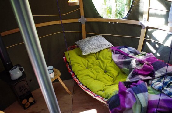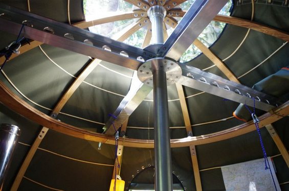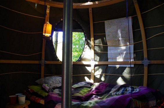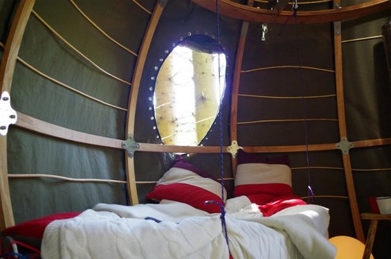 Шаторот е лесен и водоотпорен, составен е од 100% памучно платно и може да ви пружи удобно засолниште, додека пак тркалезната структура хармонично се вклопува во дрвјата. Со својата големина од 3 метри во дијаметар, има доволно простор за удобно сместување на двајца возрасни. Ова експертски изработено ремек-дело ќе ве чини 13.000 долари.