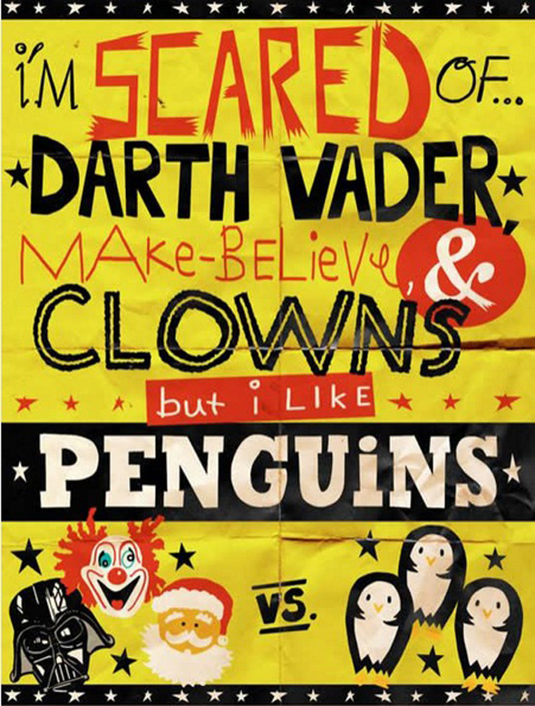 Се плашам од Дарт Вејдер, измислени работи и кловнови, но сакам пингвини.