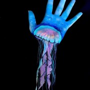 Лиша визуелно „резба“ делови од своите екстремитети, боејќи одредени сегменти во црна боја кои исчезнуваат во црните позадини. Она што останува се светликави медузи, сјајни грамофони и други надреални сцени кои повеќе изгледаат како да се насликани на хартија или платно, отколку на рацете.